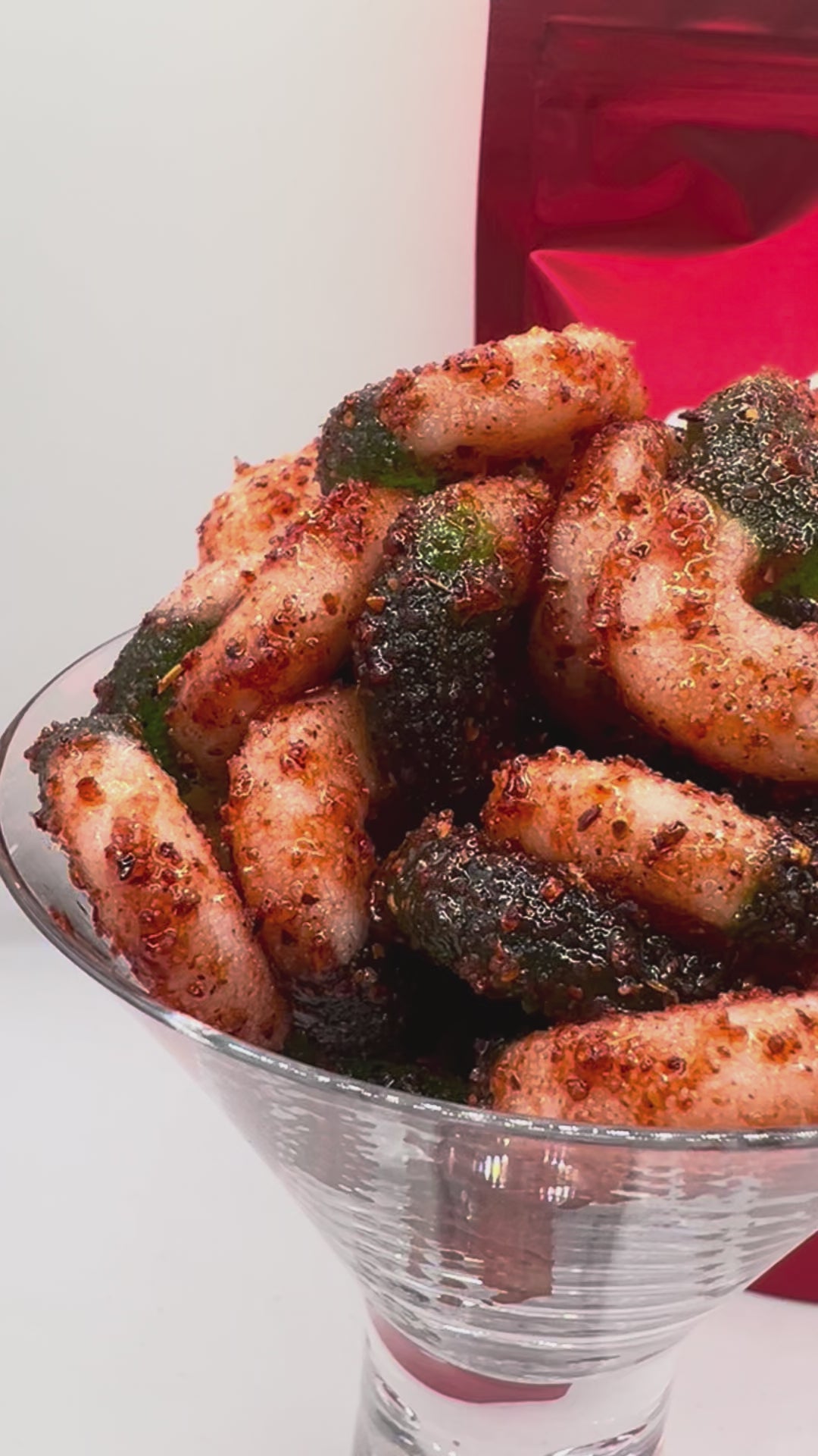 These green apple rings strike the perfect balance between tart and sweet, coated in our signature chamoy and exclusive chili blend. A bold twist on a classic gummy candy; tangy, spicy, and handcrafted full of flavor. Great for gifting or snacking.
